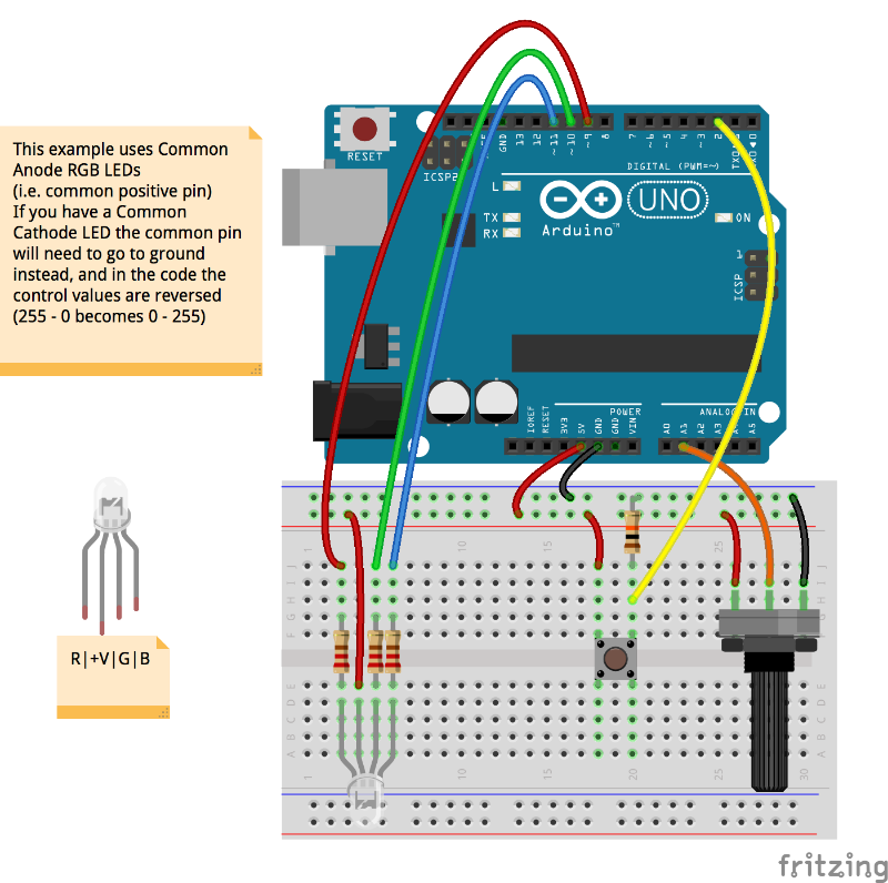 /*This sketch will send the values from a potentiometer * and a button out via serial. We will be using the * graphical media based programming environment 'Max MSP' * by Cycling74 https://cycling74.com/ to interpret the * values and control things with them. Likewise, in the * next exercise, we will communicate with the Arduino from * Max too, to control our RGB LED. * * Max is available as a free trial, but the provided patches * will run anyway even if your trial has finished (though you * will not be able to save). * * Luke Wodbury 14 January 2016 */ void setup(){ // create serial buffer, i.e. enable serial communication Serial.begin(9600); } void loop(){ //create an integer variable called 'pot' and store //the reading from pin Analog 0 in it int pot = analogRead(0); //create an integer variable called 'button' and store //the reading from pin Digital 2 in it int button = digitalRead(2); // write values to serial buffer //print the word 'pot' and a space Serial.print("pot "); //print the value of the pot variable followed by a line break (println) Serial.println(pot); //print the word 'button' and a space Serial.print("button "); //print the value of the pot variable followed by a line break (println) Serial.println(button); }